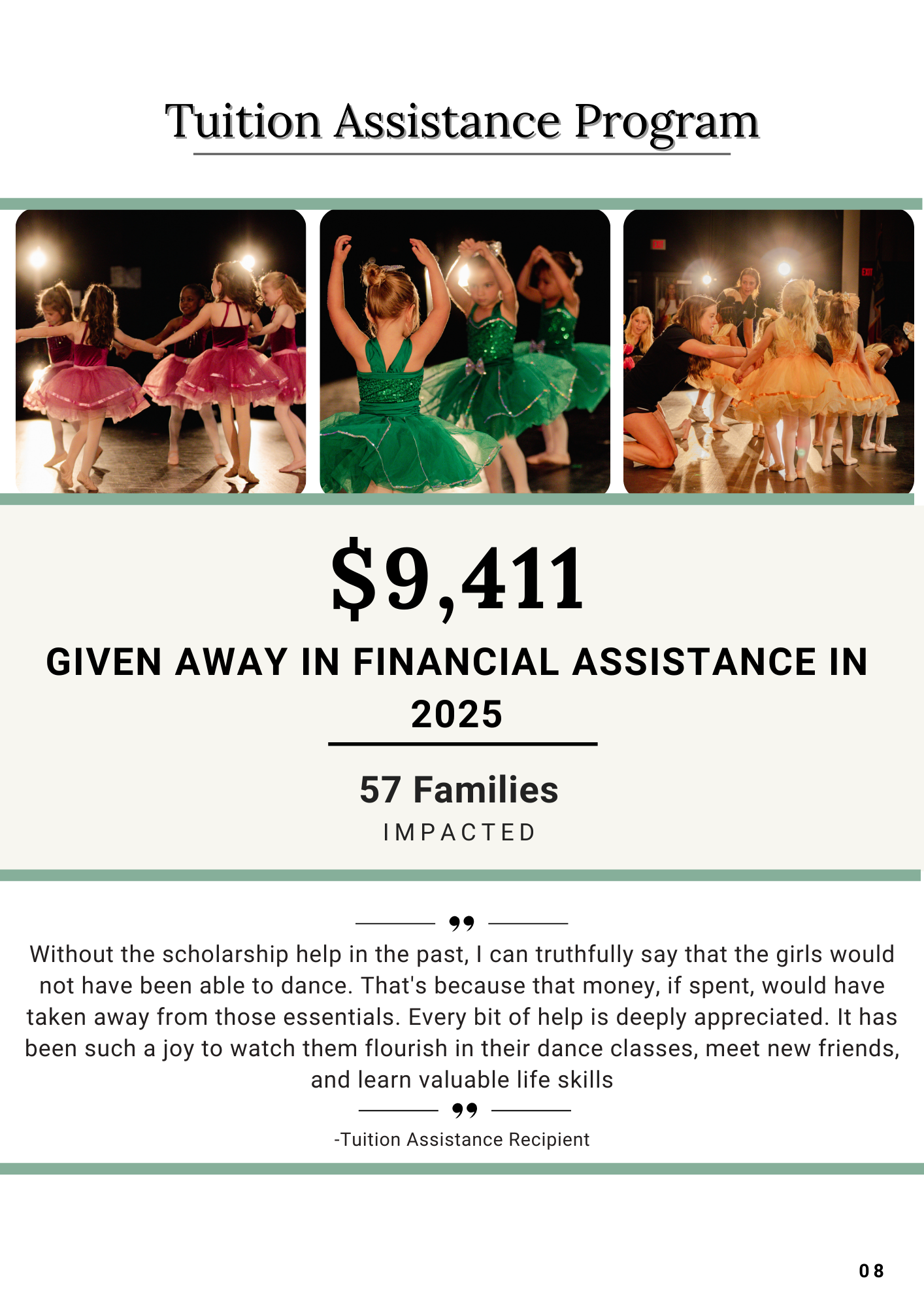 We believe in using the power of dance to strengthen our community. Our inclusive and mobile programs make dance education accessible to everyone, regardless of location, ability, or resources. We break down barriers to ensure the arts flourish everywhere.